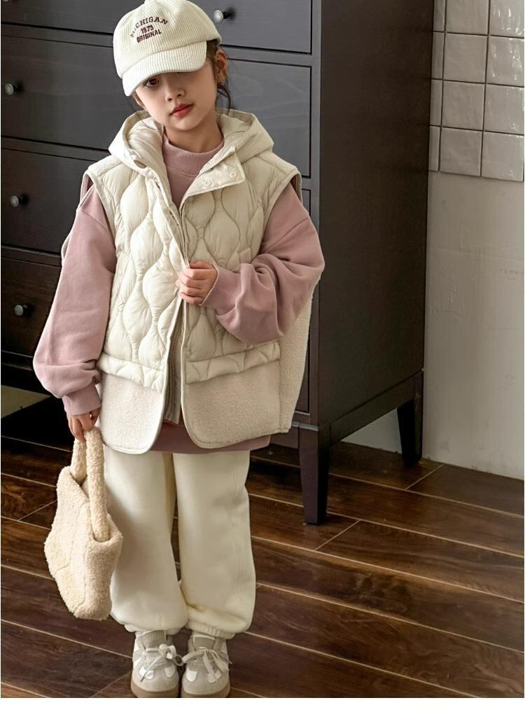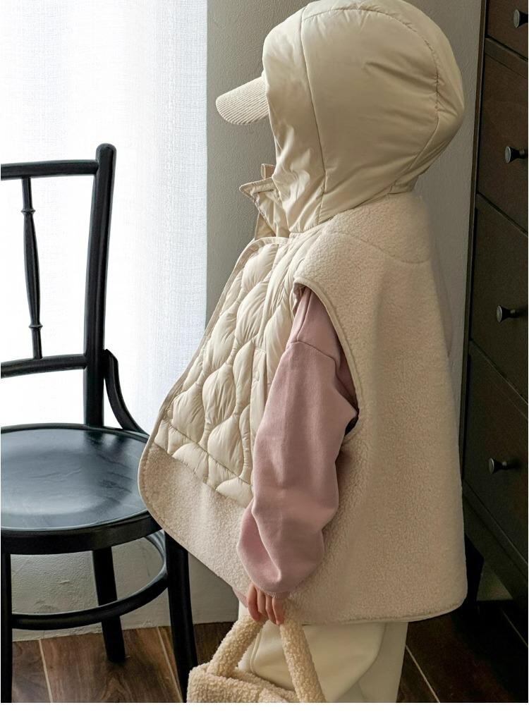 キッズ ベスト 男の子 女の子 秋冬 ボア アウター リバーシブル フード付き ジップアップ 韓国 子供服 チェック柄